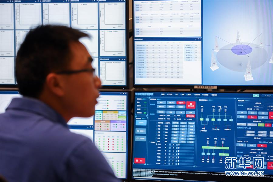 8月30日凌晨,工作人員在“中國天眼”總控室內工作。新華社記者歐東衢攝