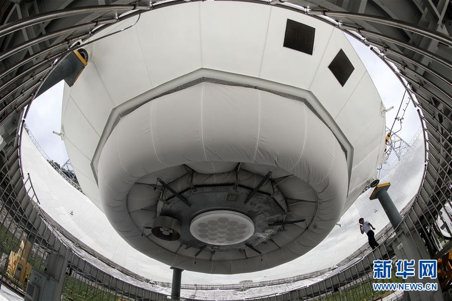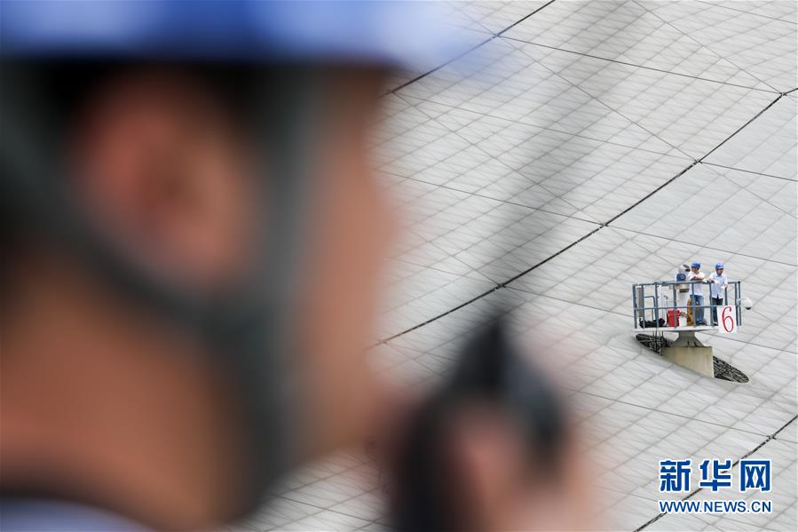 8月28日,工作人員在“中國天眼”內進行檢修。新華社記者歐東衢攝