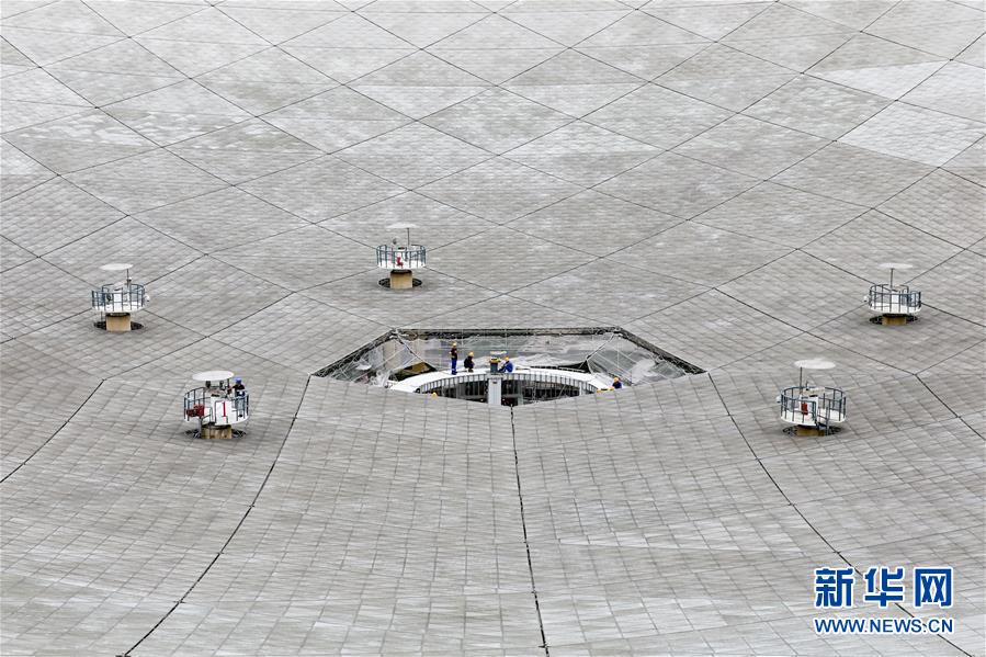 8月28日,工作人員在對(duì)FAST進(jìn)行檢修。近日,工作人員對(duì)“中國(guó)天眼”進(jìn)行日常維護(hù)和檢修,給“天眼”進(jìn)行全面“體檢”。被譽(yù)為“中國(guó)天眼”的500米口徑球面射電望遠(yuǎn)鏡(FAST)于2016年9月25日落成啟用,即將迎來(lái)落成三周年。新華社記者歐東衢攝