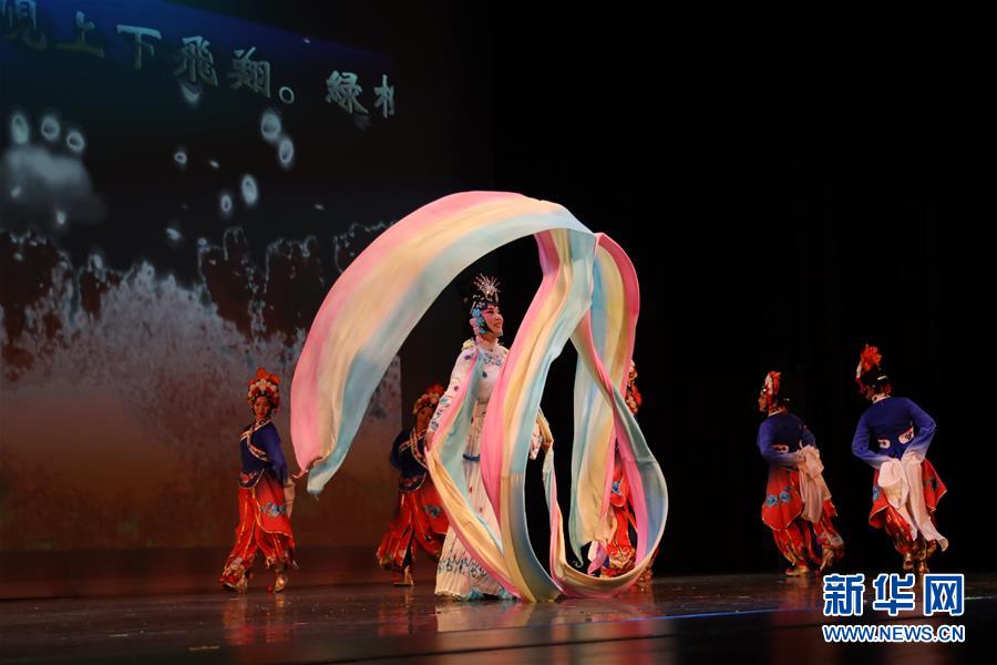 1月11日,在美國(guó)休斯敦舉辦的“擁抱春天”晚會(huì)上,演員表演傣族舞《山靈》。