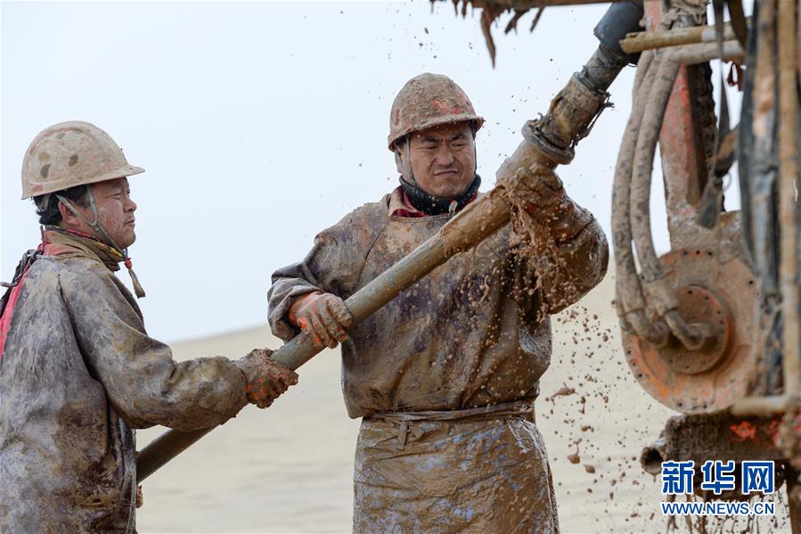 1月13日,鉆井工在連接鉆桿。地球物理勘探是油氣開發(fā)的第一步,相當于給地球做CT。物探工人按照嚴格的測線部署,在相應位置鉆井,然后實施地震,采集地震波數據??蒲腥藛T通過數據組成的“CT片”,就能夠清晰地“看”到地下的地質結構,判斷哪里埋藏有石油或者天然氣。2019年10月,東方地球物理勘探有限責任公司塔里木物探處2113隊進入新疆塔克拉瑪干沙漠腹地,開始中古14-21、塔中2兩個區(qū)塊的三維地震勘探。近2000名物探工人將在1000平方公里的范圍內一直工作到2020年4月,這也意味著他們將在塔克拉瑪干沙漠腹地連續(xù)度過第14個除夕夜。蘊藏著豐富石油天然氣資源的新疆塔克拉瑪干沙漠有“死亡之?!敝Q,氣候干燥,年降水量在50毫米以下,冬季地表最低溫度超過零下30攝氏度,是世界油氣勘探難度最大的地區(qū)之一。為避開風季,物探工人每年9、10月份進入沙漠,一直工作到來年4月,夜以繼日與黃沙、嚴寒為伴,用辛勤的汗水,為祖國找油找氣。新華社記者丁磊攝