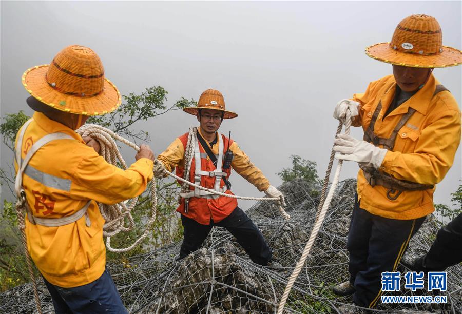 1月14日,百色工務(wù)段白水河橋隧工區(qū)班組工長(zhǎng)王勇(中)在穿戴安全裝備,準(zhǔn)備下山崖巡查。在中國(guó)鐵路南寧局集團(tuán)公司百色工務(wù)段白水河橋隧工區(qū),有一個(gè)由14名工人組成的班組。他們常年像“爬山虎”一樣行走攀爬在地形險(xiǎn)峻、云霧繚繞的高山上,負(fù)責(zé)南昆鐵路轄區(qū)路段的搜山掃石工作,清除一切可能危害鐵路行車安全的因素,保障旅客出行安全。新華社記者張愛(ài)林?jǐn)z