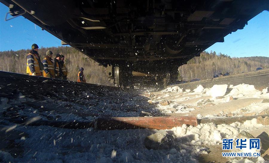 1月8日,西羅奇維修工隊(duì)工人們?cè)谖髁_奇嶺一號(hào)隧道附近等待列車經(jīng)過(guò)。新華社記者王毓國(guó)攝