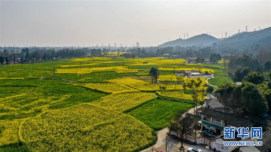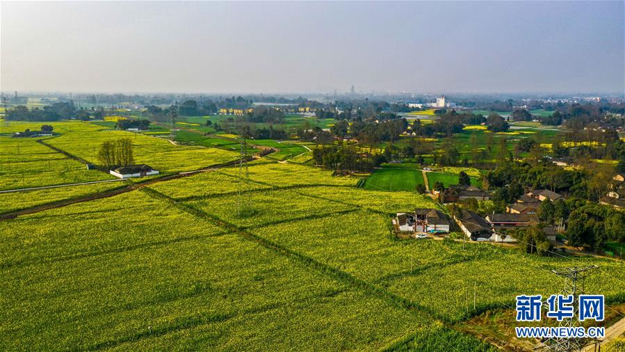 2月25日在四川省崇州市農(nóng)業(yè)產(chǎn)業(yè)功能區(qū)拍攝的油菜花田(無人機(jī)照片)。 初春時(shí)節(jié),正值農(nóng)時(shí)。成都平原西部的大邑、崇州等縣市油菜長勢(shì)良好,一片生機(jī)盎然的景象。  新華社記者 王曦 攝