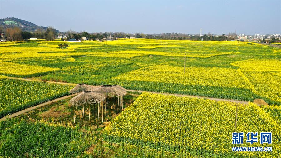 2月25日在四川省崇州市農(nóng)業(yè)產(chǎn)業(yè)功能區(qū)拍攝的油菜花田(無人機(jī)照片)。  新華社記者 王曦 攝