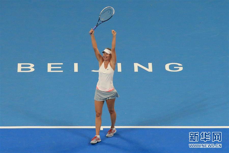 圖為2014年10月5日,莎拉波娃在中國(guó)網(wǎng)球公開賽女子單打決賽中戰(zhàn)勝捷克選手科維托娃,奪得冠軍。 新華社記者邢廣利攝