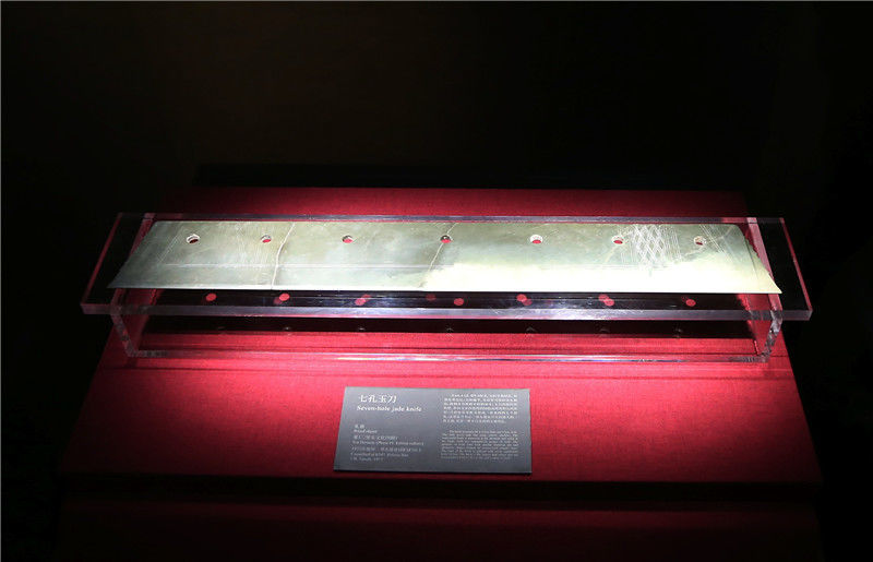 2019年10月19日,河南洛陽(yáng),二里頭夏都遺址博物館。“七孔玉刀”是二里頭夏都遺址出土的最大的玉器。