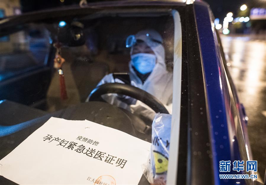 2月29日凌晨,王震坐在車廂內(nèi)。擋風(fēng)玻璃前放著孕產(chǎn)婦緊急送醫(yī)證明。新華社記者 肖藝九 攝