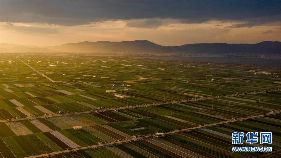時(shí)下正值農(nóng)忙時(shí)節(jié),云南省玉溪市通??h的農(nóng)作物長勢喜人,山巒、湖水與農(nóng)田組成了一幅美麗的田園詩畫卷。
