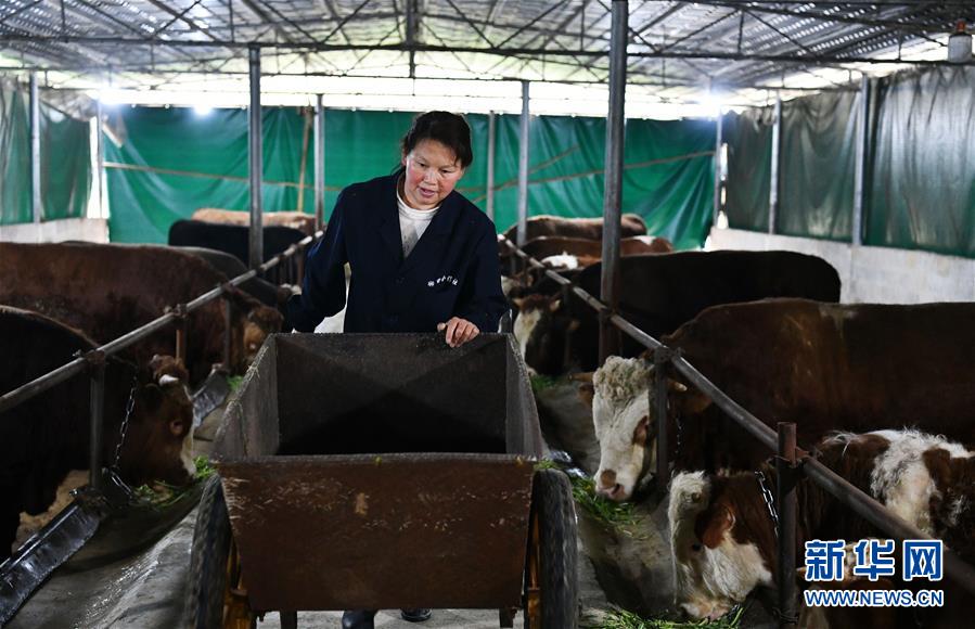 在貴州省銅仁市德江縣平原鎮(zhèn)坳田村,養(yǎng)殖戶在坳田畜牧養(yǎng)殖農民專業(yè)合作社喂牛(2月29日攝)。新華社記者 楊文斌 攝