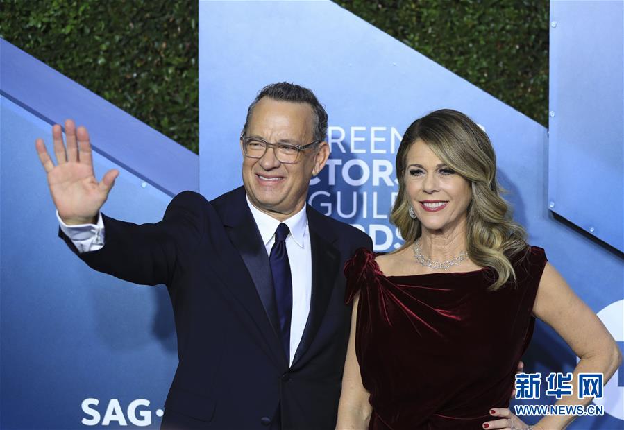 這是1月19日美國影星湯姆·漢克斯與妻子在美國洛杉磯亮相第26屆美國影視演員協(xié)會獎(jiǎng)紅毯時(shí)的資料照片。