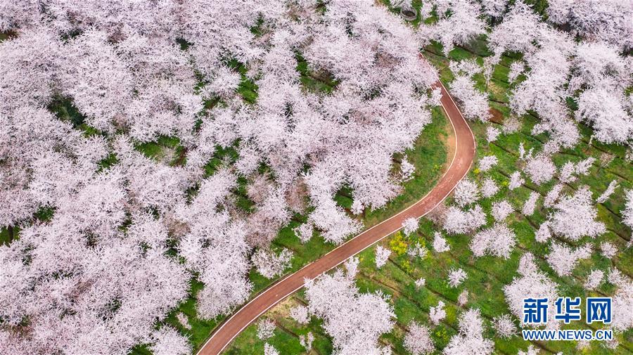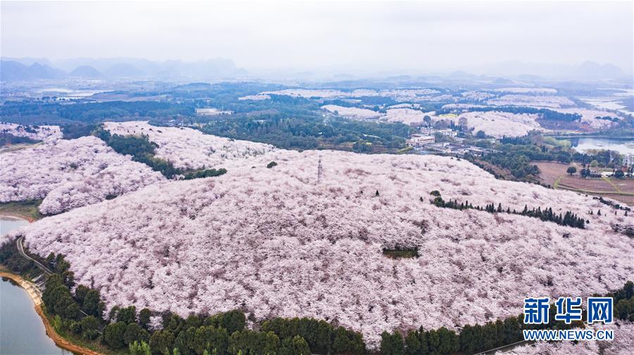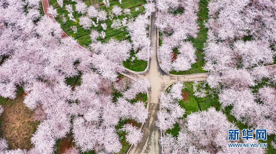 3月12日拍攝的貴安新區(qū)櫻花觀光園風(fēng)景(無人機照片)。 近日,貴州省貴安新區(qū)櫻花觀光園內(nèi)櫻花競相盛開,花團錦簇間春意盎然。據(jù)介紹,疫情防控期間,為避免人群聚集,櫻花園暫不接待游客。 新華社記者 陶亮 攝