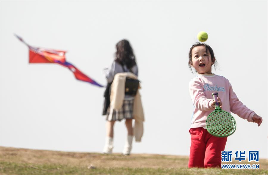 3月15日,一名小朋友在南京東郊體育公園練習兒童網(wǎng)球。 當日,南京風和日麗,市民們來到東郊體育公園,踏青春游。 新華社記者 楊磊 攝