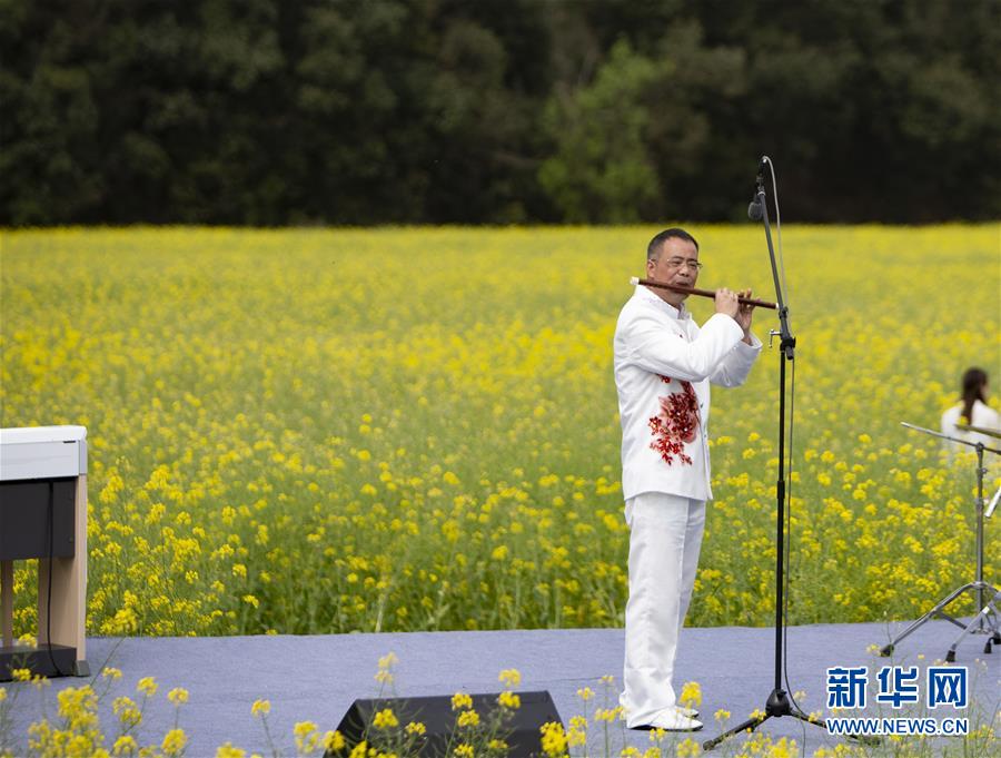 3月16日,演員在李坑村的“花田音樂會(huì)”上表演。 新華社記者 張浩波 攝