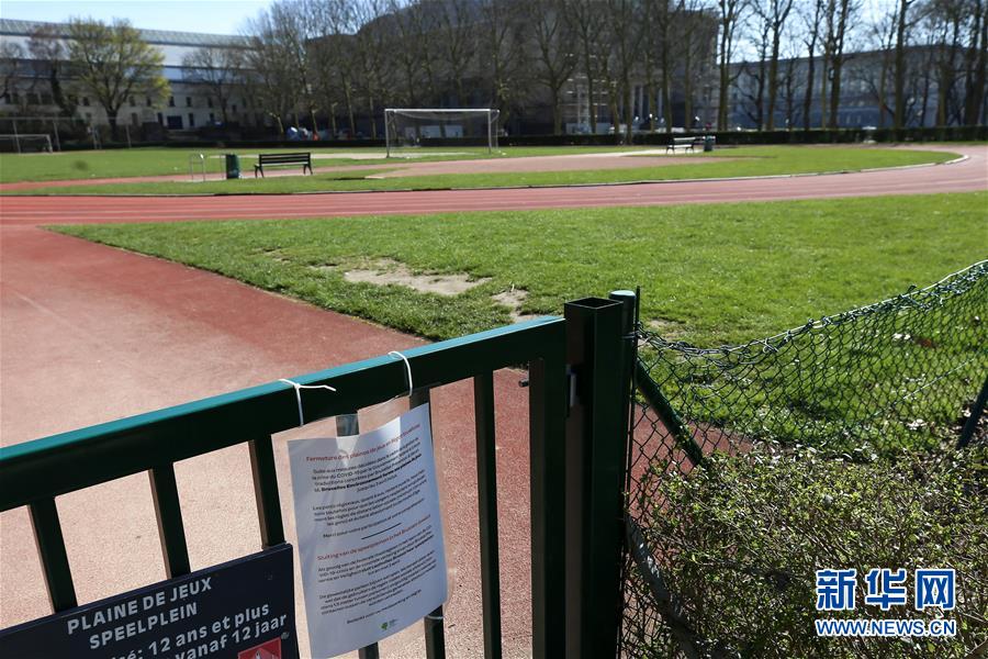 這是3月18日在比利時布魯塞爾拍攝的一處關(guān)閉的運動場。 新華社記者 張鋮 攝