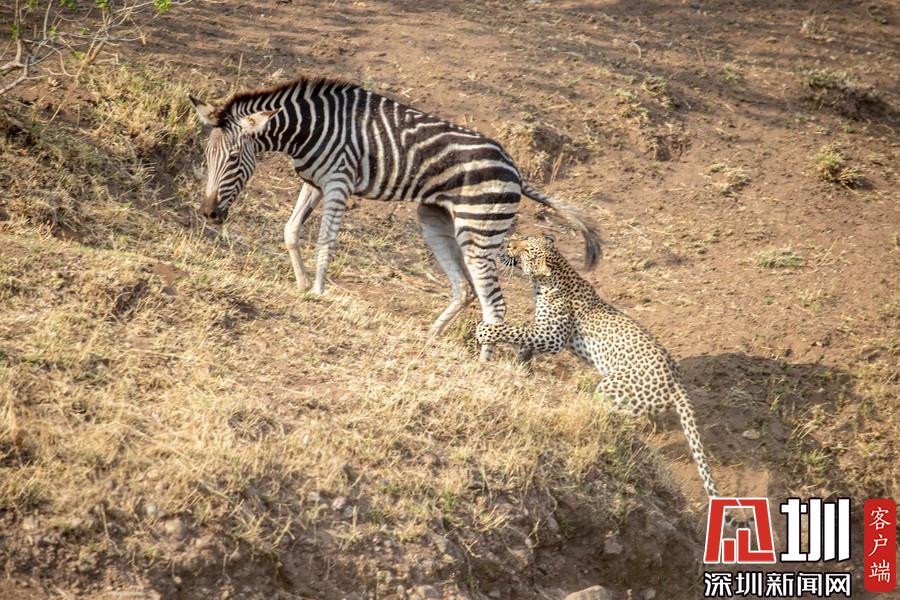獵豹仿佛和斑馬成為了好友,緊緊跟隨這個新伙伴一起行走,最終斑馬將“屁股”對準(zhǔn)了獵豹的頭部,而獵豹似乎在聞味道。