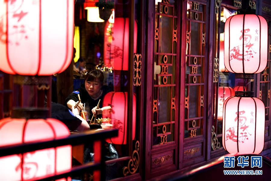 3月21日,在四川省成都市錦江區(qū)商業(yè)場街的一家火鍋店內(nèi),顧客在就餐。近日,在做好新冠肺炎疫情防控措施的基礎(chǔ)上,四川省成都市的火鍋店逐漸恢復(fù)營業(yè)。新華社記者王曦?cái)z