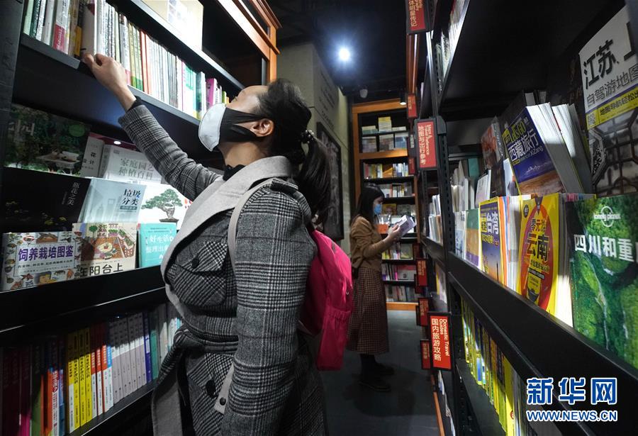 3月22日,顧客在上海市中山北路上的一家書(shū)店內(nèi)閱讀選購(gòu)。近期,上海市的一些實(shí)體書(shū)店陸續(xù)恢復(fù)開(kāi)放。為做好疫情防控工作,目前進(jìn)入書(shū)店需要測(cè)量體溫,書(shū)店也縮短了運(yùn)營(yíng)時(shí)間。新華社記者陳飛攝