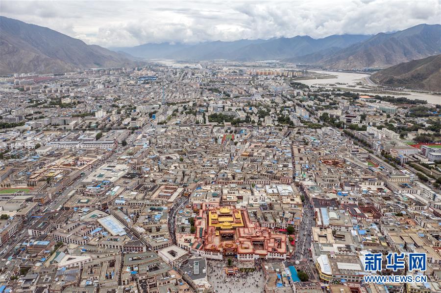 鳥瞰拉薩古城(8月10日無人機拍攝)。新華社記者晉美多吉攝