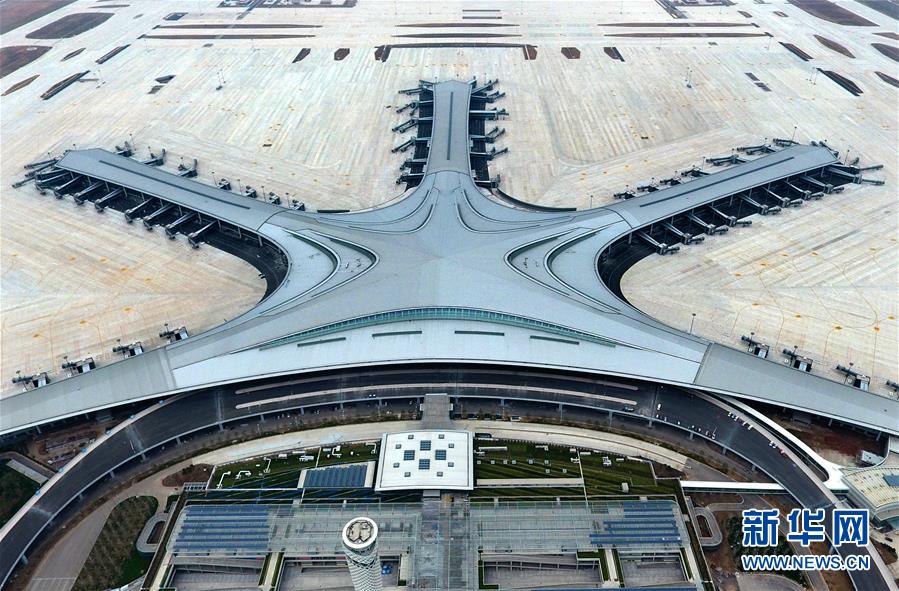 建設(shè)中的青島膠東國際機場(3月25日攝,無人機照片)。新華社記者李紫恒攝