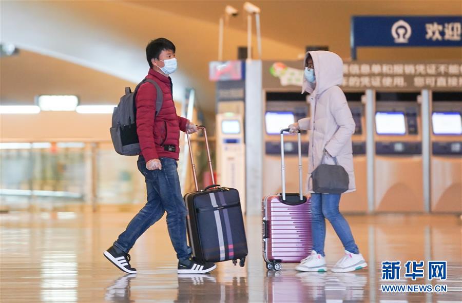 3月28日,在漢口火車站,一名小朋友幫家長提行李出站。當日零時起,武漢市恢復辦理鐵路客站到達業(yè)務。為做好抵漢旅客組織工作,武漢三大火車站安排專人提前與列車對接,核對下車人數(shù),并組織工作人員和鐵路志愿者提前在站臺等候接車,做好組織引導。列車到達后,車站配合防疫部門做好旅客出站測溫、登記信息等工作,并和公交集團、地鐵公司聯(lián)動,引導旅客按照去向有序換乘。新華社記者肖藝九攝