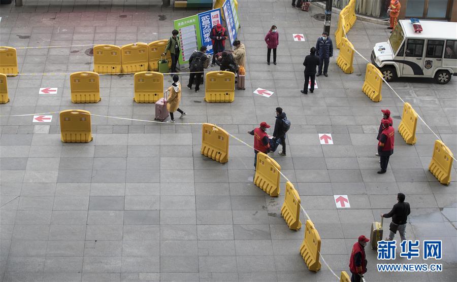 3月28日,工作人員引導(dǎo)出站的旅客按照不同的路線乘坐公交車。新華社記者費茂華攝