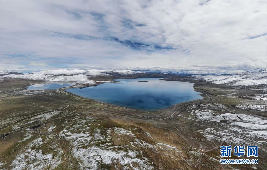 9月24日無人機(jī)拍攝的拿日雍錯(cuò)。拿日雍錯(cuò)位于西藏山南市錯(cuò)那縣北部,海拔4900米,像藍(lán)寶石般鑲嵌在雪山草原之間。新華社記者晉美多吉攝
