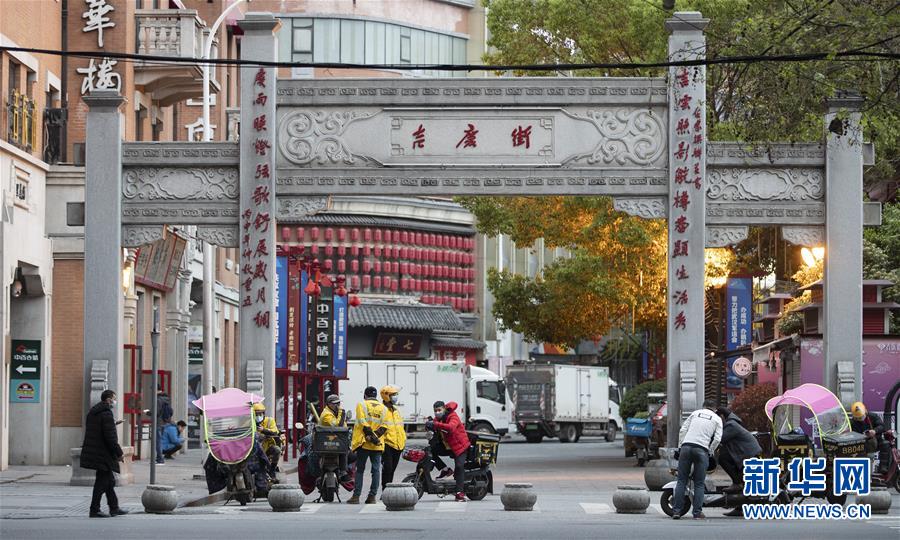 4月1日,外賣(mài)騎手在吉慶街等待接單。 新華社記者費(fèi)茂華攝