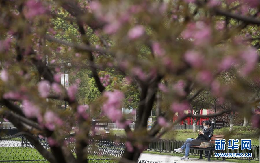 3月25日,在武漢的一個(gè)街心花園,市民在長(zhǎng)椅上休息。新華社記者費(fèi)茂華攝