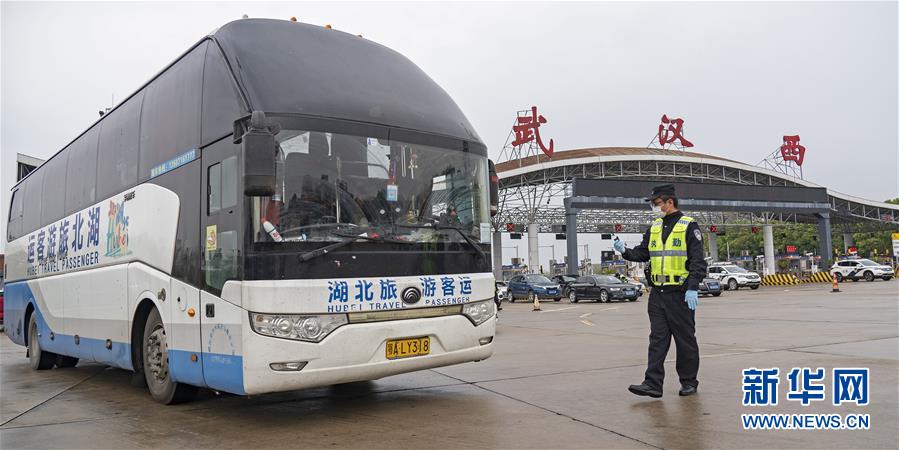 3月24日,在武漢西高速收費站交通卡點,執(zhí)勤民警準備檢查車輛。新華社記者才揚攝