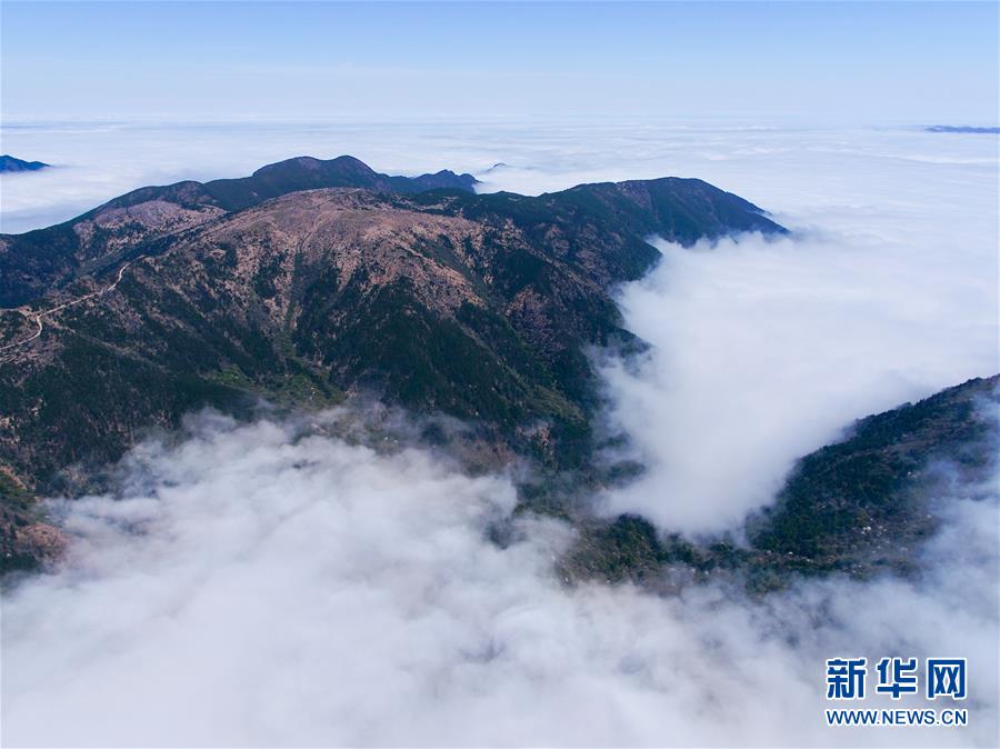 武夷山國(guó)家公園最高峰黃崗山云霧繚繞(4月1日攝,無(wú)人機(jī)照片)。 新華社記者 姜克紅 攝