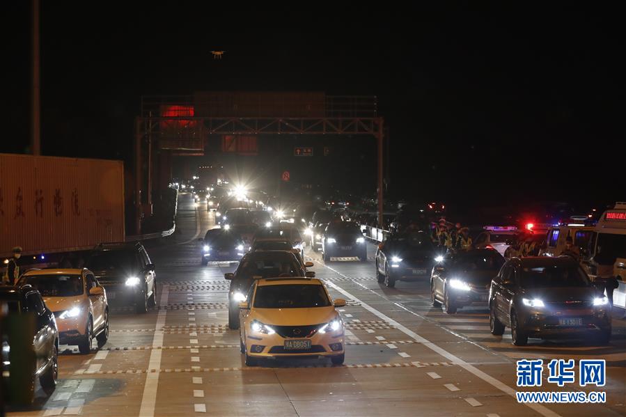 4月8日凌晨,車輛準(zhǔn)備通過武漢西高速收費(fèi)站。 新華社記者 沈伯韓 攝