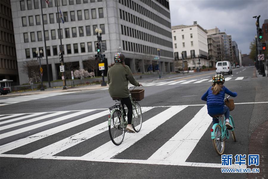 4月8日,在美國首都華盛頓,市民在空曠的街道上騎行。美國約翰斯·霍普金斯大學(xué)8日發(fā)布的新冠疫情最新統(tǒng)計數(shù)據(jù)顯示,美國確診病例超過40萬例。美國目前是全球確診病例最多的國家。數(shù)據(jù)顯示,截至美國東部時間8日12時30分(北京時間9日0時30分),美國新冠確診病例升至401166例,死亡12936例。新華社記者劉杰攝