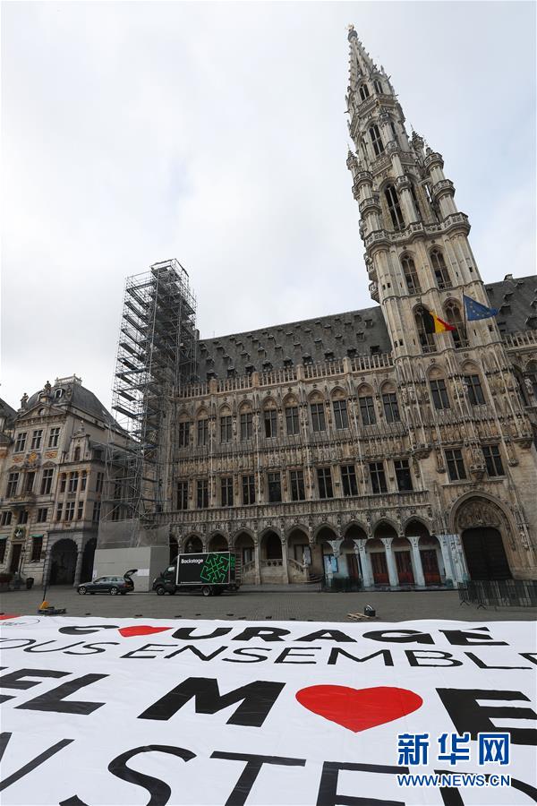 比利時(shí)布魯塞爾巨幅海報(bào)為抗擊疫情加油