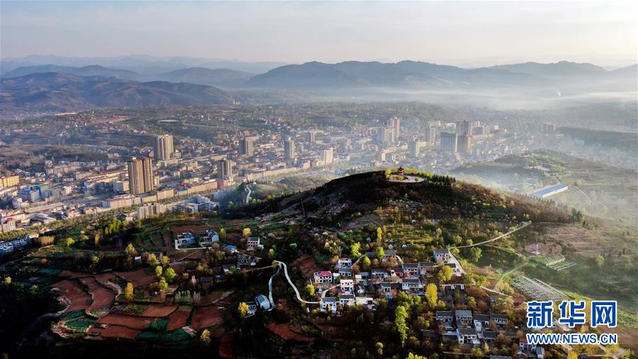 4月13日清晨時(shí)分拍攝的洛南縣城(無人機(jī)照片)。新華社記者陶明攝