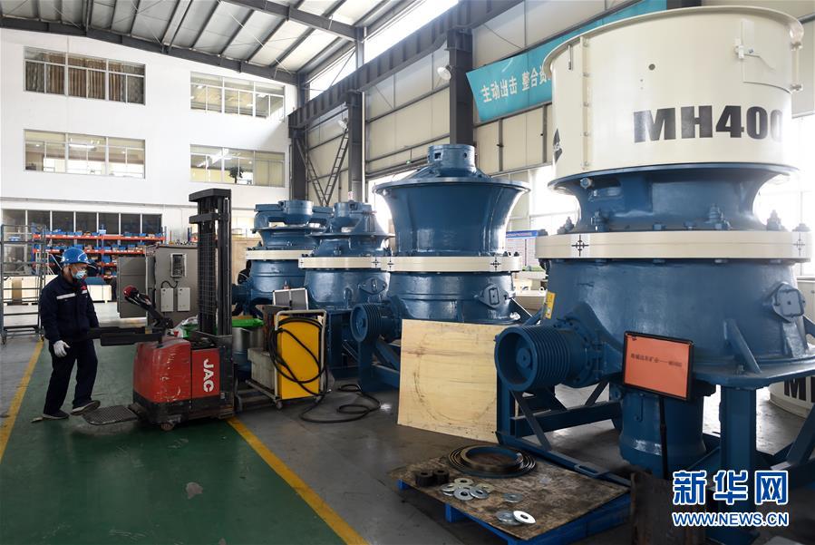 4月13日,員工在位于店口鎮(zhèn)的浙江埃里斯克工程機(jī)械有限公司車間內(nèi)裝配礦山工程設(shè)備。