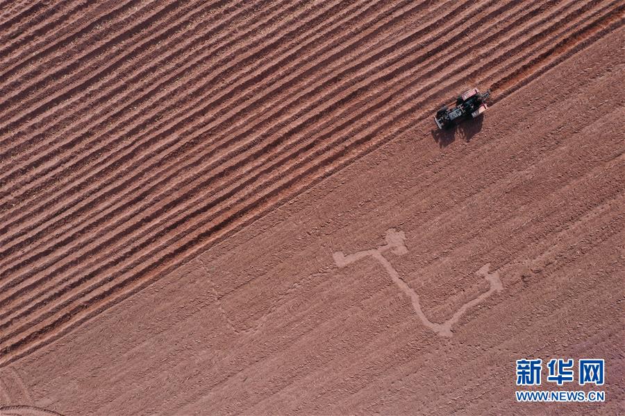 4月15日,農(nóng)民操作機械在杭錦旗道勞呼都格嘎查的農(nóng)田里翻地,為種植紅蔥做準(zhǔn)備(無人機照片)。春種時節(jié),在內(nèi)蒙古鄂爾多斯市杭錦旗道勞呼都格嘎查,農(nóng)民忙著播種紅蔥。在鄂爾多斯高原種植的紅蔥耐旱耐寒,具有較好的經(jīng)濟效益。新華社記者徐欽攝