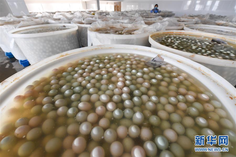 在江蘇高郵鴨集團生產(chǎn)車間,腌制好的鴨蛋準備進行清洗包裝作業(yè)(4月15日攝)?!案哙]鴨蛋”是江蘇高郵的特色農(nóng)業(yè)名片。近年來,當?shù)卦诹挤N繁育、生態(tài)養(yǎng)殖、產(chǎn)品加工等方面加大力度,推動高郵鴨蛋品牌化建設(shè),讓小鴨蛋成為帶動農(nóng)戶致富的大產(chǎn)業(yè)。2019年,高郵市共計生產(chǎn)熟制鴨蛋產(chǎn)品近11.2億枚,年產(chǎn)值近17.68億元。新華社記者李博攝