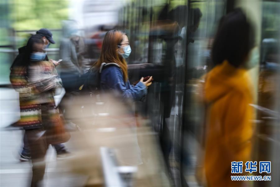 4月22日,在武漢軌道交通一號(hào)線,乘客排隊(duì)有序上車。為建立與經(jīng)濟(jì)社會(huì)發(fā)展和疫情防控需要相適應(yīng)的運(yùn)輸服務(wù)保障機(jī)制,保障市民出行需求,從4月22日起,武漢城市公共交通有序恢復(fù)全線網(wǎng)運(yùn)營(yíng)。新華社記者沈伯韓攝
