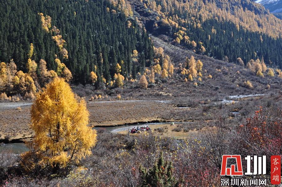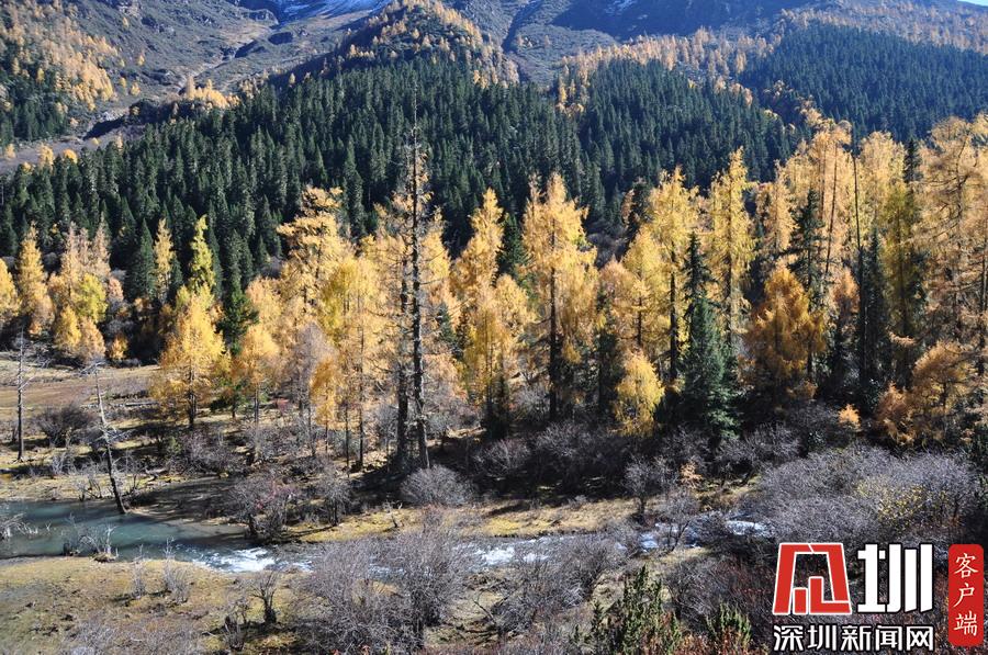 溝里有大片的落葉松、杜鵑和云杉林,雪山、海子、濕地、河流等景觀應(yīng)有盡有,唯獨沒有公路,只能沿木棧道徒步游覽。李仁奇攝