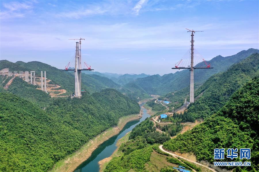 這是建設(shè)中的遵余高速湘江大橋(4月26日攝,無人機照片)。近日,由中鐵廣州局承建的貴州遵余高速湘江大橋工程在做好疫情防控的同時,全力恢復生產(chǎn)建設(shè)。目前工程進展順利,正在進行主橋鋼梁架設(shè),預計將于8月底合龍。據(jù)了解,遵余高速湘江大橋橋梁全長1700余米,主跨560米。新華社記者劉續(xù)攝