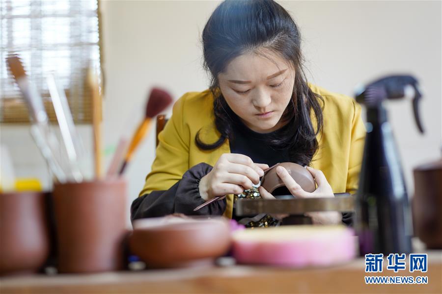 重慶榮昌安陶小鎮(zhèn)的一個工坊內(nèi),當(dāng)?shù)刂铺账嚾嗽谥谱靼蔡债a(chǎn)品(3月25日攝)。素有“渝西門戶”之稱的榮昌,已從重慶、成都中間地帶的“產(chǎn)業(yè)塌陷區(qū)”變身為投資熱土,成為重慶發(fā)展最快的地區(qū)之一,也見證著成渝從“背向發(fā)展”到“相向發(fā)展”的滄桑巨變。新華社記者劉潺攝