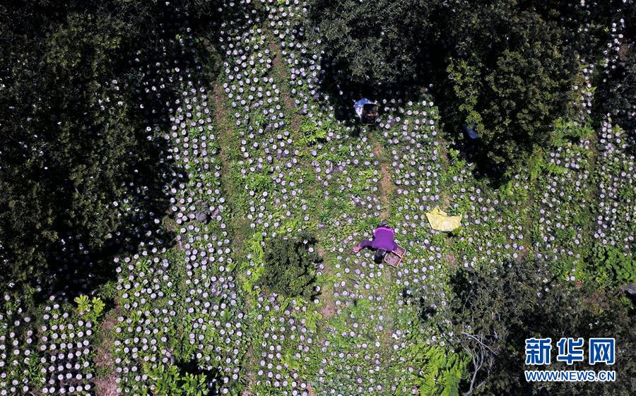 村民在劍河縣岑松鎮(zhèn)巫亮村林下仿野生食用菌基地采摘木耳(4月27日攝,無人機照片)。近年來,貴州省黔東南苗族侗族自治州劍河縣充分利用林下土地培育木耳,既不耽誤林木生長,又發(fā)展了食用菌產(chǎn)業(yè)。目前,該縣采取“龍頭企業(yè)+合作社+貧困戶”的合作模式,大力推廣林下木耳種植,帶動農(nóng)民增收。新華社記者楊文斌攝