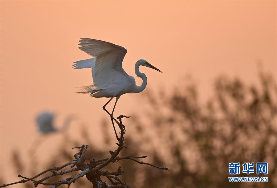 白鷺在位于鄱陽湖畔的南昌市象山森林公園內(nèi)棲息(4月27日攝)。近日,在江西省南昌市新建區(qū)象山森林公園內(nèi),已安家筑巢的大批白鷺進入繁殖旺季。在夕陽的照耀下,白鷺時而翩翩起舞,時而展翅盤旋,構(gòu)成一幅美麗的自然生態(tài)畫卷。新華社記者萬象攝