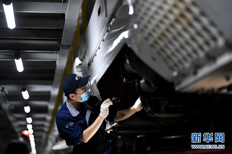 4月29日夜,合肥南動車運用所的工作人員對動車組進行檢修。每當夜深人靜的時候,合肥南動車運用所卻燈火通明,“動車安全守護者”們堅守崗位,對動車組進行全面細致檢修。新華社記者 劉軍喜 攝