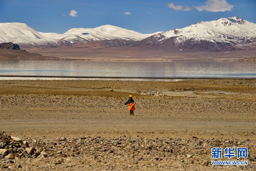 4月30日,一名藏族小孩在當(dāng)穹錯湖畔玩耍。當(dāng)穹錯地處西藏那曲市尼瑪縣南部,湖面海拔4475米。暮春時節(jié),湖水碧藍清亮,讓人仿佛置身仙境。新華社記者田金文攝