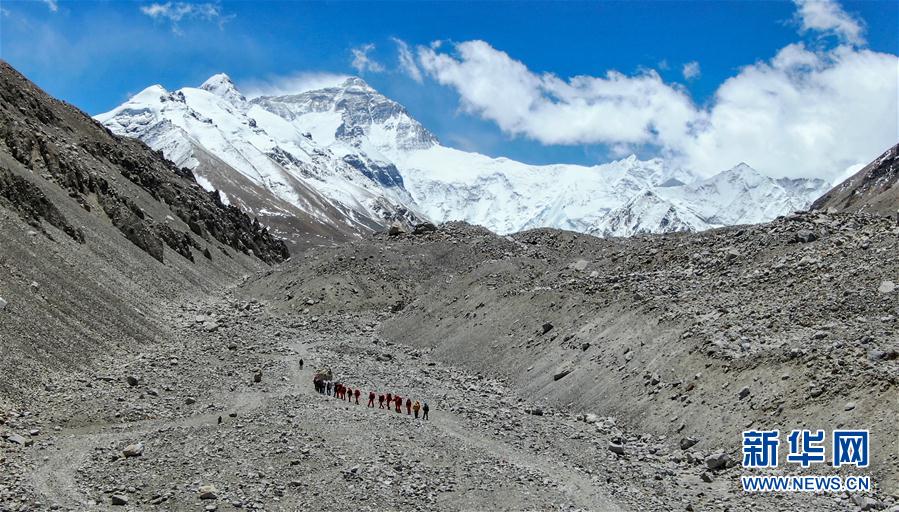5月6日,登山隊員們向更高海拔進發(fā)。新華社記者普布扎西攝