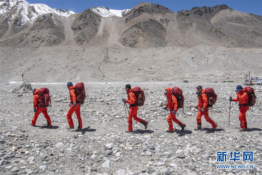 當日,2020珠峰高程測量登山隊伍在珠峰大本營舉行出發(fā)儀式。30多名隊員從海拔5200米的大本營向更高海拔出發(fā),開啟珠峰沖頂測量。隊員們力爭抓住近日的天氣窗口,擇日登頂測量。如果成功,這將是我國專業(yè)測繪人員首次登頂珠峰測高。新華社記者普布扎西攝