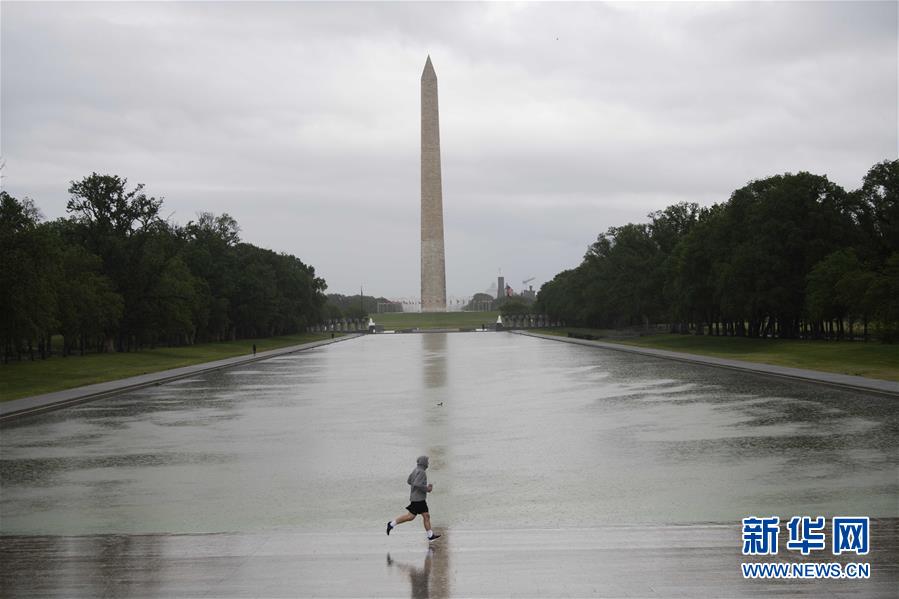 5月6日,在美國首都華盛頓,一名男子在華盛頓紀念碑附近跑步健身。美國自動數(shù)據(jù)處理公司(ADP)6日公布的數(shù)據(jù)顯示,由于新冠疫情沖擊美國經(jīng)濟和企業(yè),4月美國私營部門大幅削減約2023.6萬個就業(yè)崗位。新華社記者劉杰攝