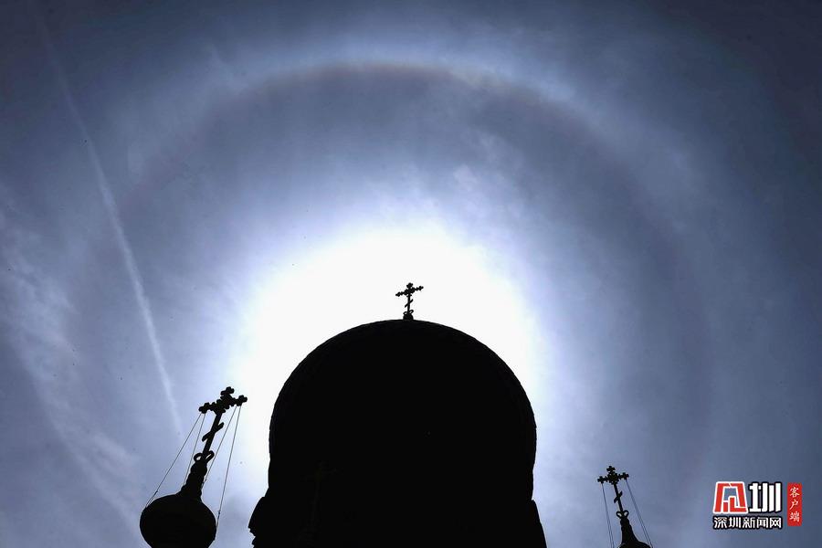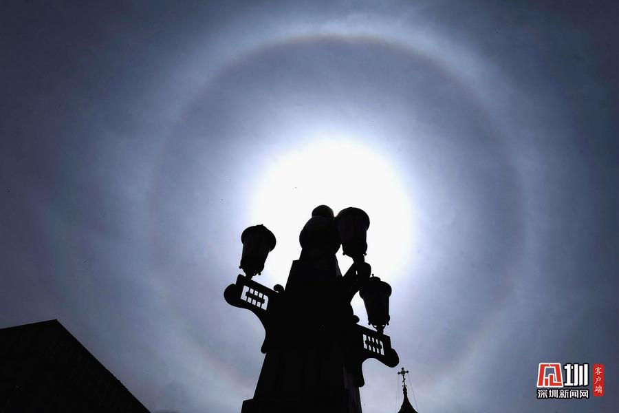 2020年5月8日,哈爾濱主城區(qū)上空呈現(xiàn)持續(xù)時(shí)間近一整天的罕見超大日暈,日暈與各種參照物構(gòu)成美輪美奐的自然天象景觀,令人贊不絕口嘖嘖稱奇。本次日暈環(huán)形巨大、色彩絢爛亮麗、持續(xù)時(shí)間長等特點(diǎn),適合公眾肉眼觀賞。